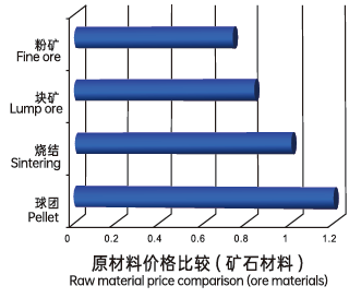 对原料的适性强,可以根据市场情况选择较低价格的原材料,或选择价格更为便宜的低品位矿石、高磷矿或氧化铁皮等废材,降低运行成本。
